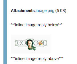 Currently, SmarterTrack shows ticket messages in plain text format. Most inline images should be linked to the message as an attachment, as shown below: