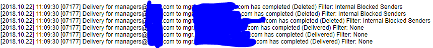 I don't believe so. The first image below is the rule I have setup, the second is the delivery report and the third one is from the smtp report. As you can see in the delivery report, only the ones that users have taught the system to mark as spam are being deleted (internal blocked senders filter) but the others are making it through. As I was taking these screenshots, it appears that the from address used is the same as the sent to address. So it is a self sending spam at the moment. Under SMTP In protocol settings, I checked and my settings for allow relay says nobody and the checkbox for "allow relay from authenticated users" is checked.