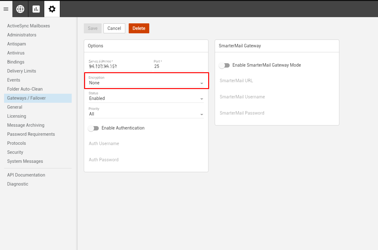 Has some code changed about how it handles the "Encryption" setting in gateway configuration? Is it now ignored?