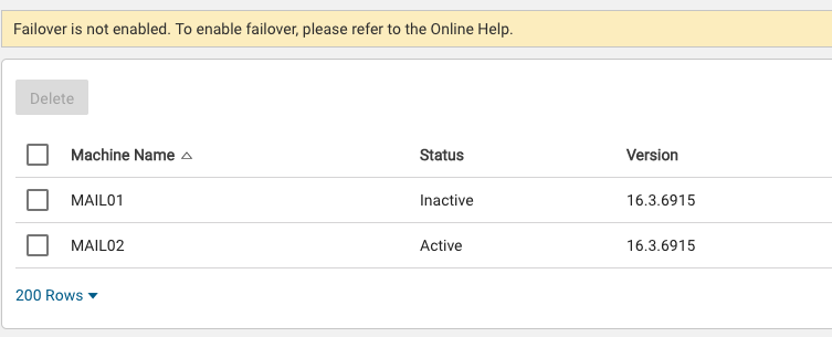 In the failover settings both nodes are shown but there is also the message "Failover is not enabled. To enable failover, please refer to the Online Help."