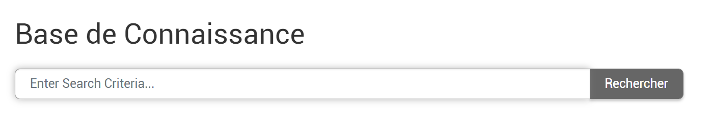 3) In the search bar under “Base de Connaissance”, the placeholder text says "Enter Search Criteria..." in English. This should be translated into French "Saisissez vos critères de recherche ...".