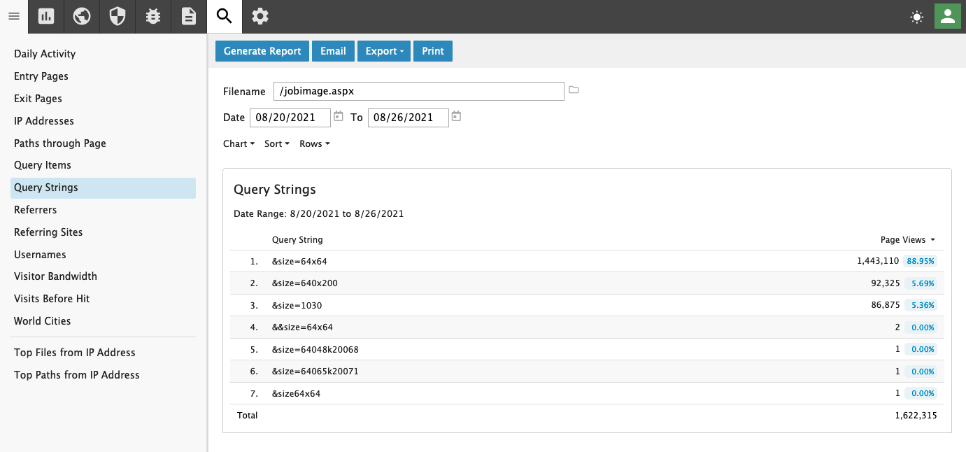 #Software: Microsoft Internet Information Services 10.0 #Version: 1.0 #Date: 2021-08-26 00:00:00 #Fields: date time cs-method cs-uri-stem cs-uri-query cs-username c-ip cs(Referer) cs-host sc-status sc-substatus sc-win32-status time-taken 2021-08-26 00:00:00 GET /jobimage.aspx jobpositionid=183945&size=64x64 123 10.10.11.12 //sv.site.com/whopper sv.site.com 200 0 0 38 2021-08-26 00:00:00 GET /jobimage.aspx jobpositionid=183943&size=64x64 456 10.10.11.13 //sv.site.com/whopper sv.site.com 200 0 0 38 2021-08-26 00:00:00 GET /jobimage.aspx jobpositionid=183950&size=64x64 789 10.10.11.14 //sv.site.com/whopper sv.site.com 200 0 0 38