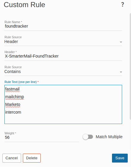 X-SmarterMail-SpamDetail: pts rule name description